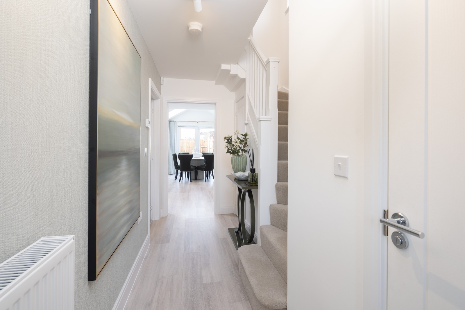 Wander along the elegant hallway past the WC and you will discover a separate sitting room overlooking the front of the home. Head towards the kitchen and you will find a generous kitchen/dining/family room with plenty of worktop space and the latest integrated appliances to fulfil your families needs.