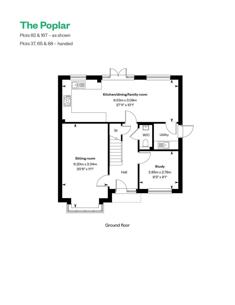 The Poplar is ideal for contemporary living on the grand scale, with a spacious sitting room for entertaining or relaxation and a large full-width, fully fitted kitchen diner that’s also a family room. It’s the heart of the home, where you can cook, eat, spend quality time together, and in the summer, fling open the patio doors and extend into the garden. There’s a cloakroom, utility room and study, den or playroom too.