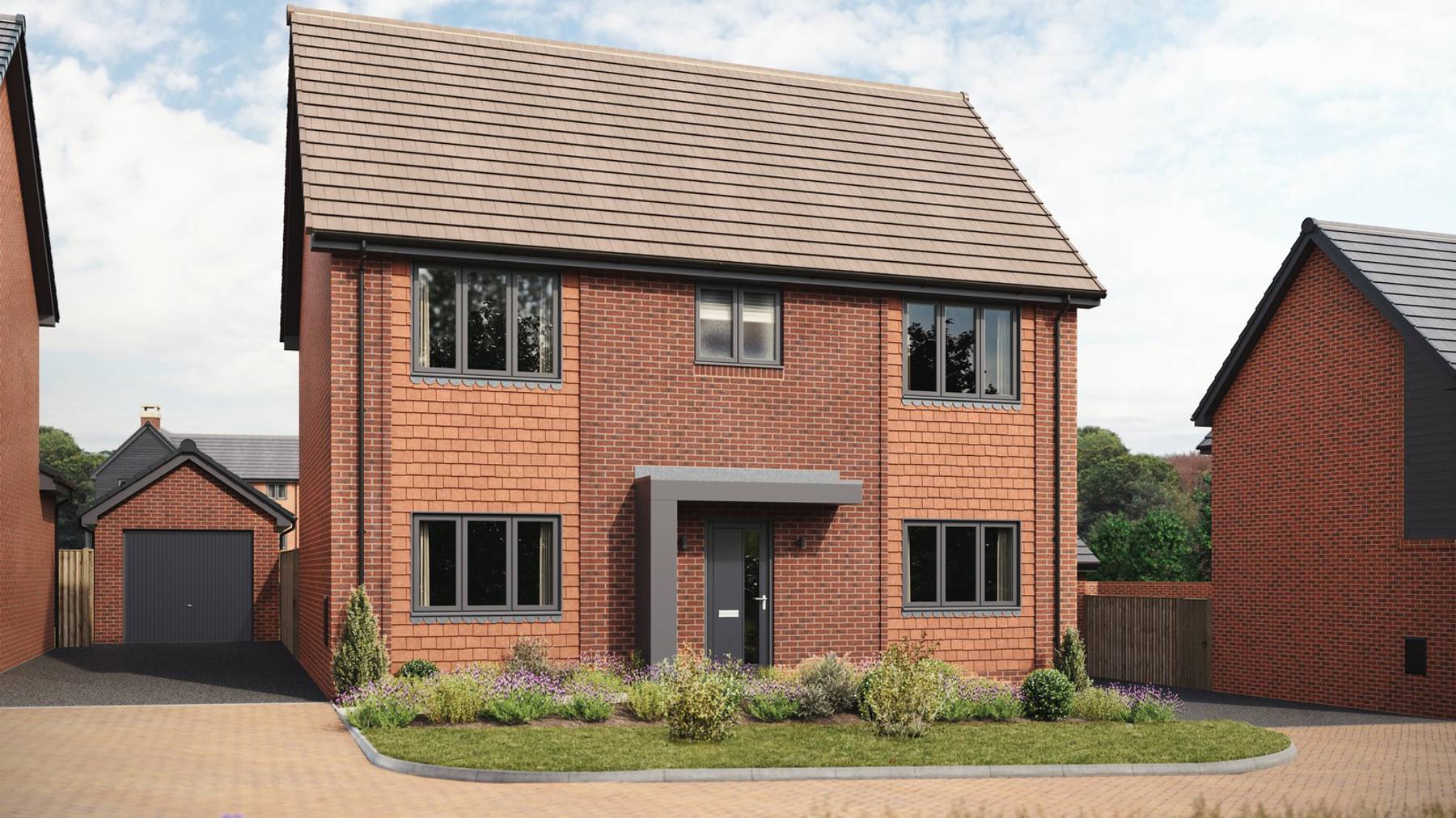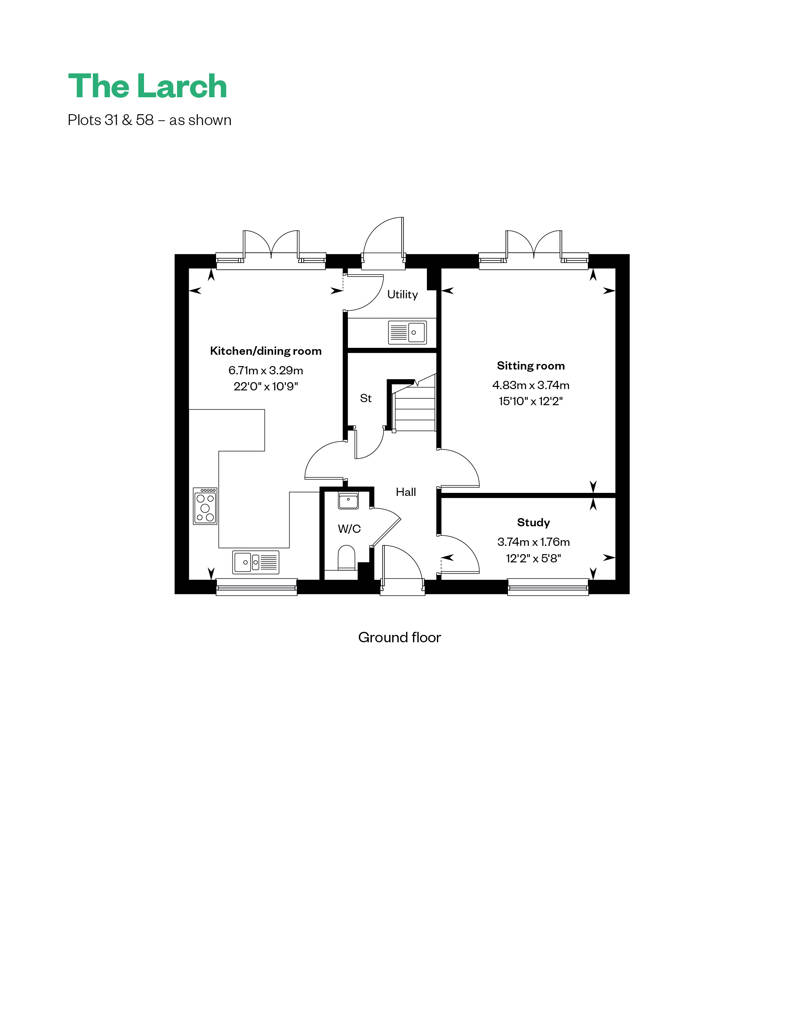 The Larch’s kitchen/dining room provides the ideal ‘hub’ to your home, open the double glass doors and wander through to your private, turfed rear garden with a generous patio. A separate utility is the perfect space to escape to when you need some quiet time for chores. Whilst the dedicated study lends itself nicely to accommodating a work from home space.