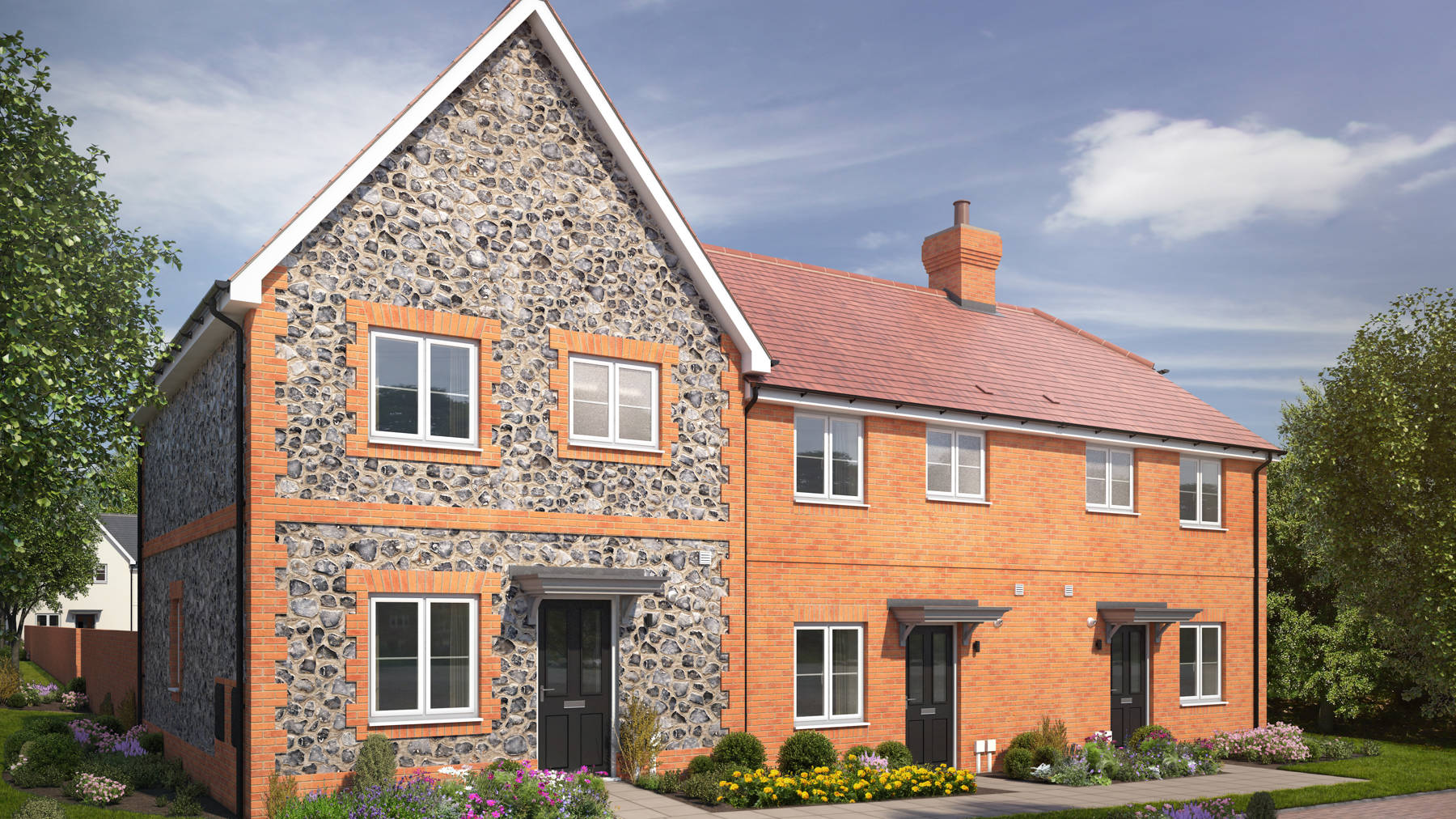 The Bayberry enjoys an elegant and contemporary layout. The hallway leads directly into the generous sitting room, ensuring that you and your guests immediately feel at home. Whether enjoying family time or entertaining, you are only ever steps away from the WC and kitchen. The combined kitchen/dining room makes light work of mealtimes. Enjoy a breath of fresh air opening the elegant patio doors to your own private garden, while a store cupboard keeps mess to a minimum. Two generous bedrooms are found on the upper floor.  Take a look at the main bedroom. There are fitted wardrobes and an en suite.  A beautifully appointed bathroom completes this level.