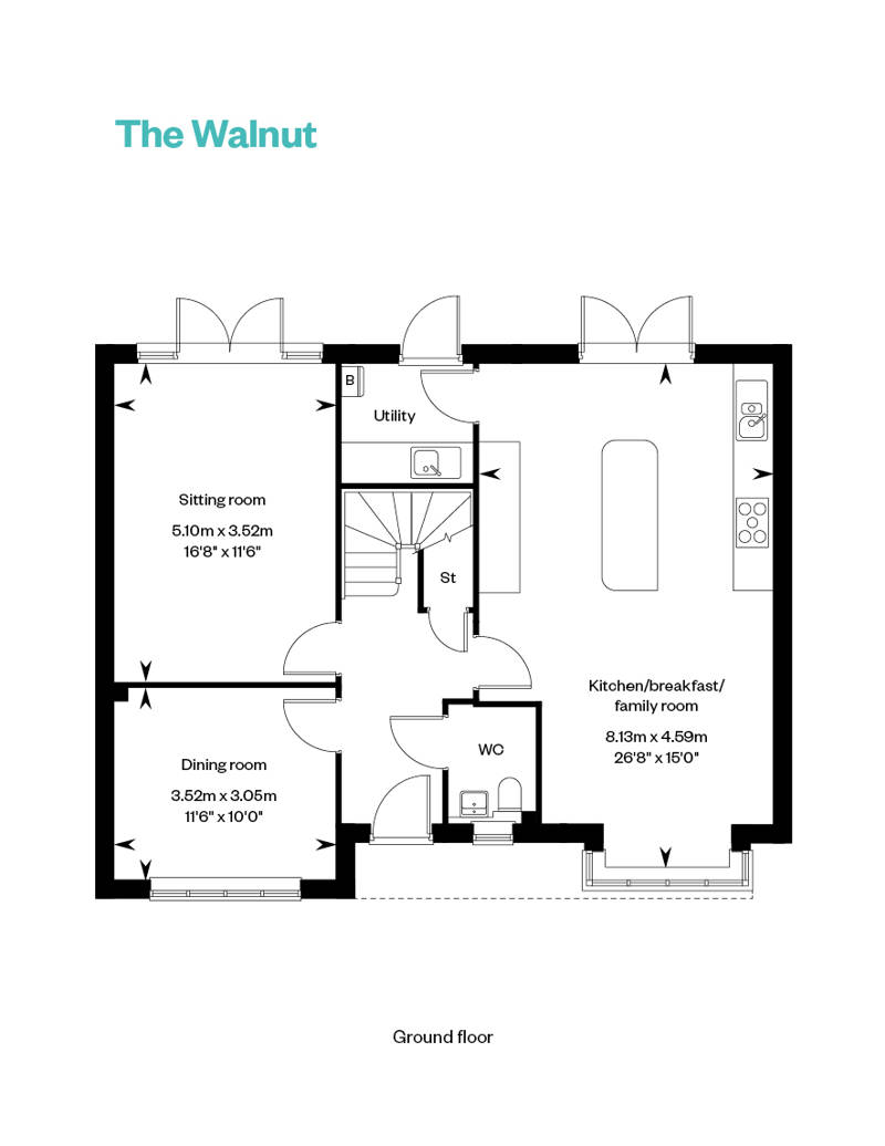 The ground floor of the Walnut offers an abundance of living space. The open plan kitchen/dining/family room is the true hub of the home, The open-plan kitchen/dining/family room serves as the heart of the home, with it's own dedicated utility space, a bay window and double doors opening onto the turfed rear garden. There is a separate sitting room ideal for catching up on the latest box set and a further dining room allows a private, quiet space for quality family meal times.