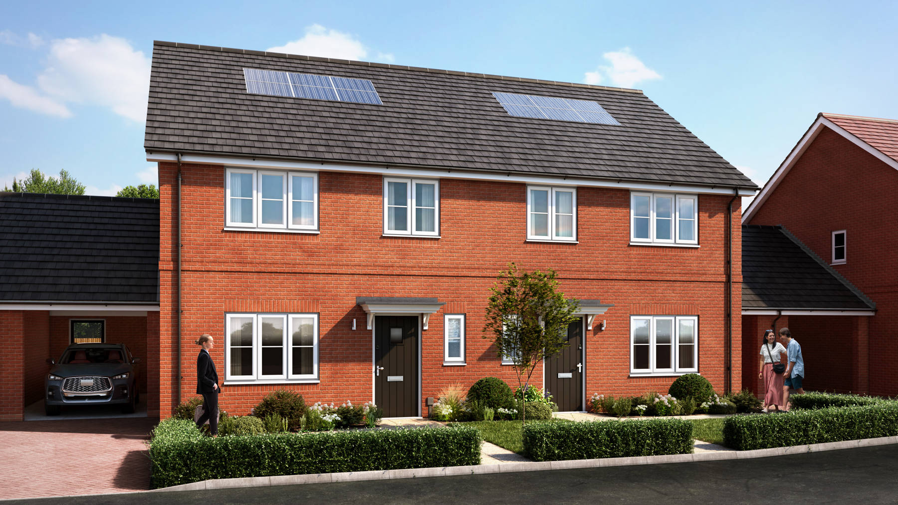 This energy-efficient home has parking, an EV charging point, flooring throughout and turf to the rear garden.