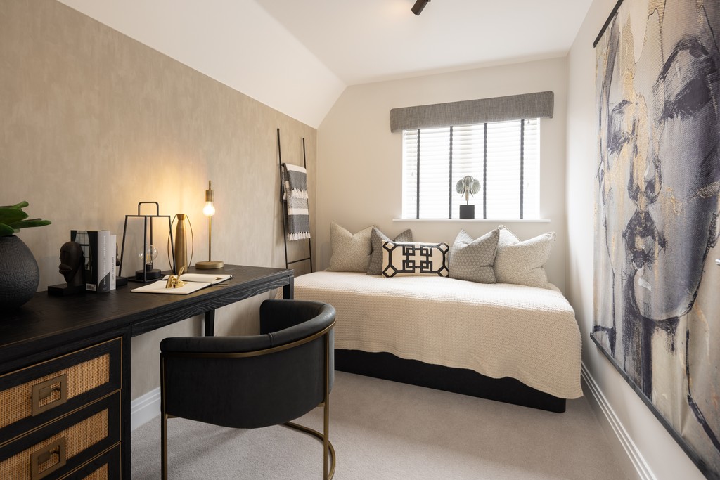 The first floor features expansive Bedroom 1, with the convenience and privacy of an en-suite shower room and the extra storage capacity of a fitted wardrobe. There’s also a separate family bathroom with White Roca sanitaryware and a generous study, which is ideal if you work from home. If you don’t, you could transform the room into whatever works for you: a gym, playroom, TV room… the choice is yours.