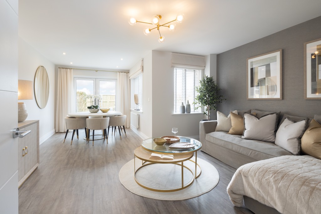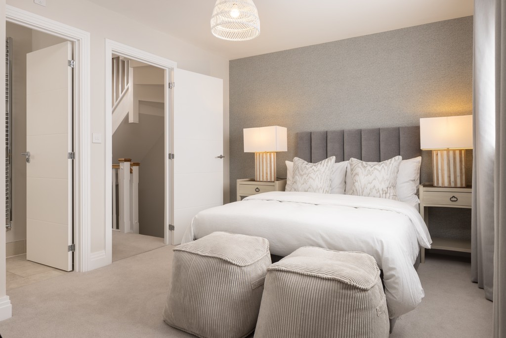 With three bedrooms and spread over three floors, the contemporary and future-ready Foxglove is surely proof that the best things truly do come in threes. The carpeted, dual aspect family and sitting room is found at the end of the downstairs hallway and has French doors leading out to the lawned garden. The front-facing kitchen/dining room, to your right as you walk in, comes complete with integrated Indesit appliances.