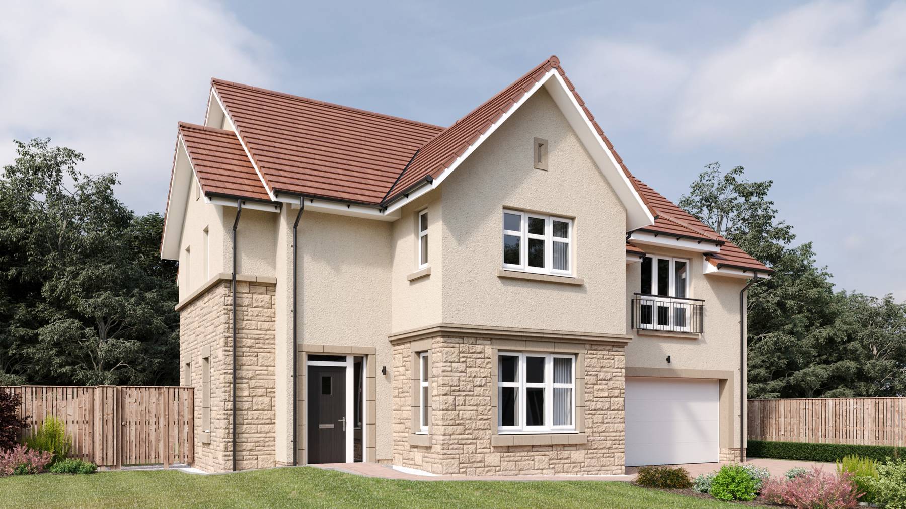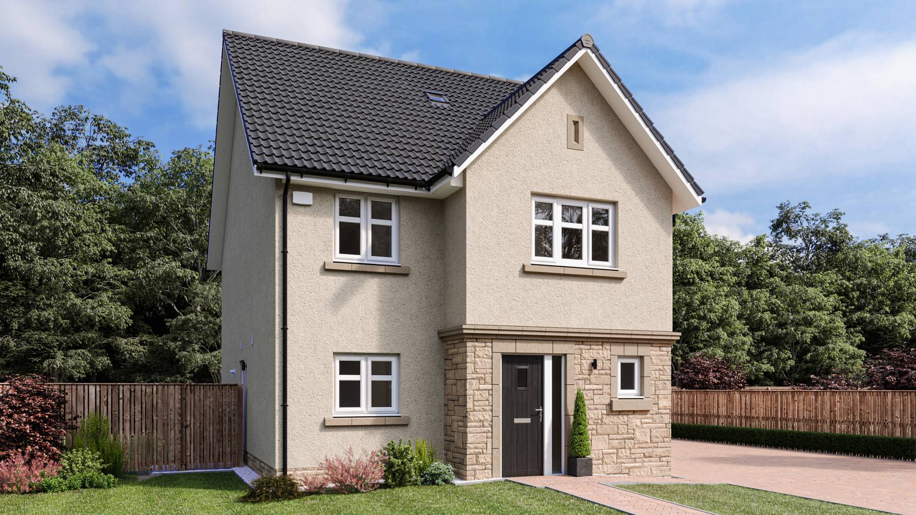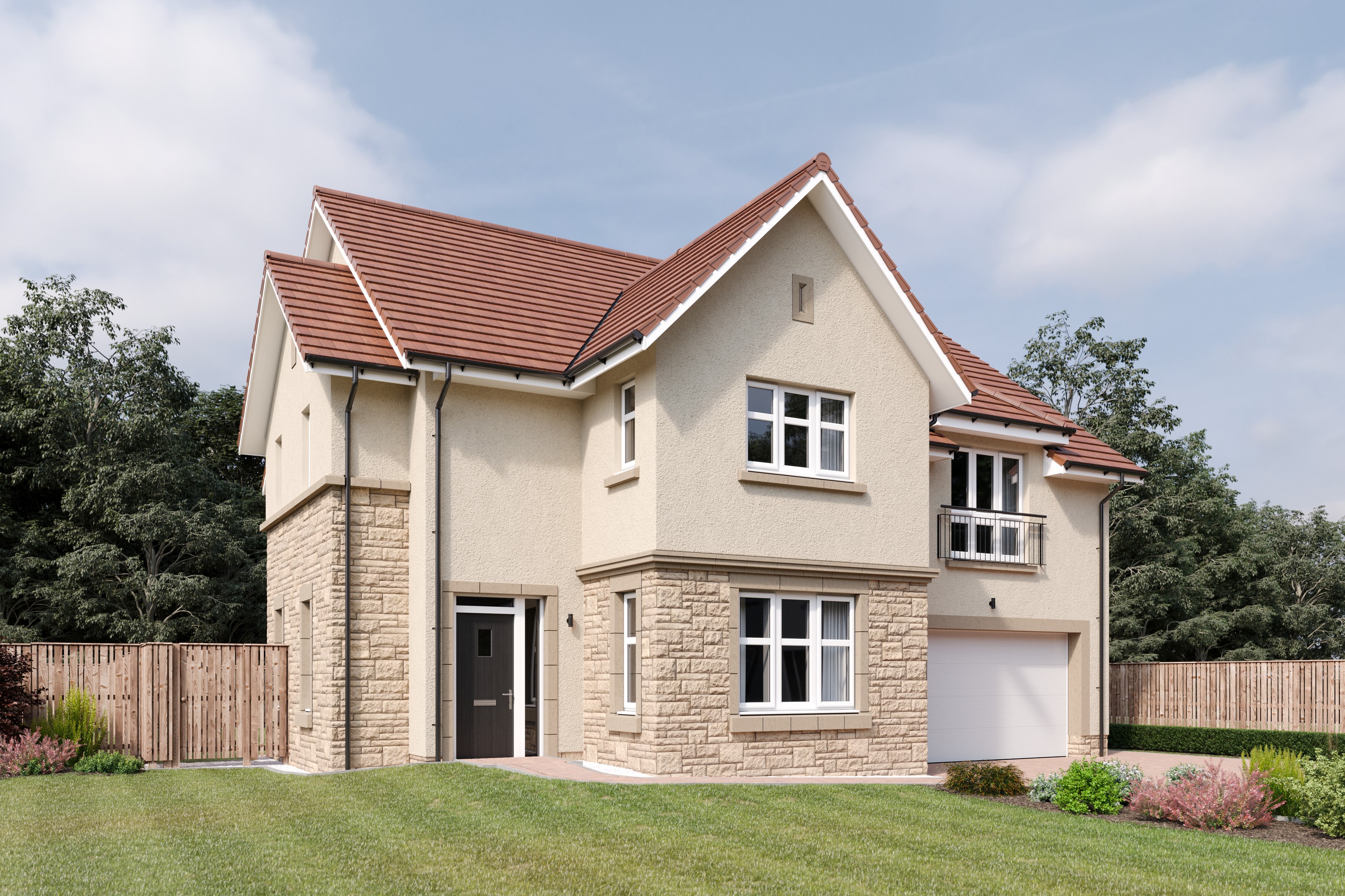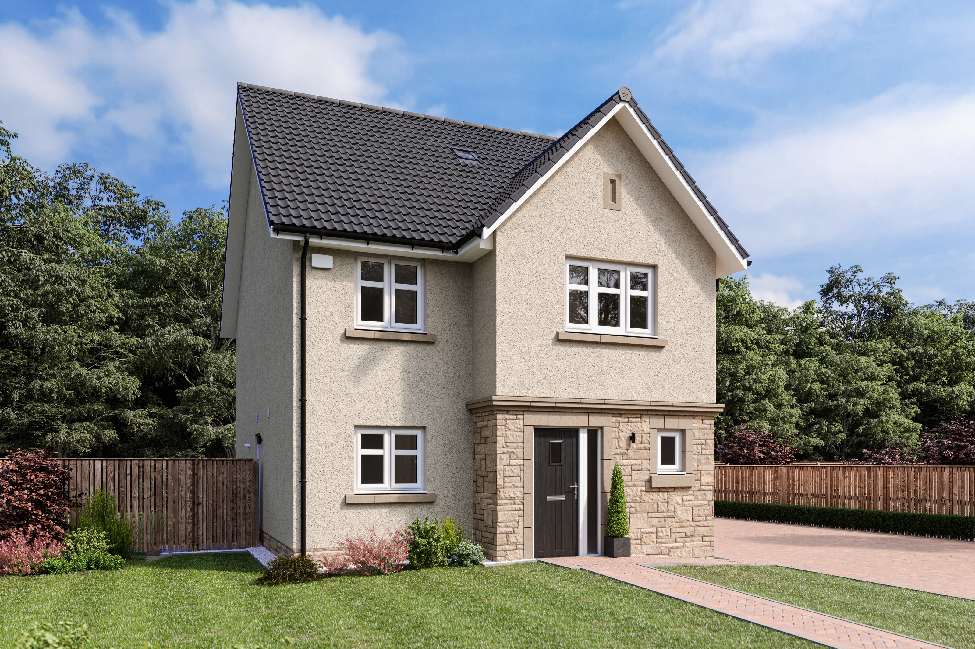 The development will deliver 188 private Cala homes, comprising a mix of 3 bedroom terraced and 4 and 5 bedroom detached properties, alongside 33 affordable homes. Almost a third of the site will be given to green spaces and landscaping, including a woodland area which divides the site. Various connecting active travel routes will be featured through the woodland area and around the development.