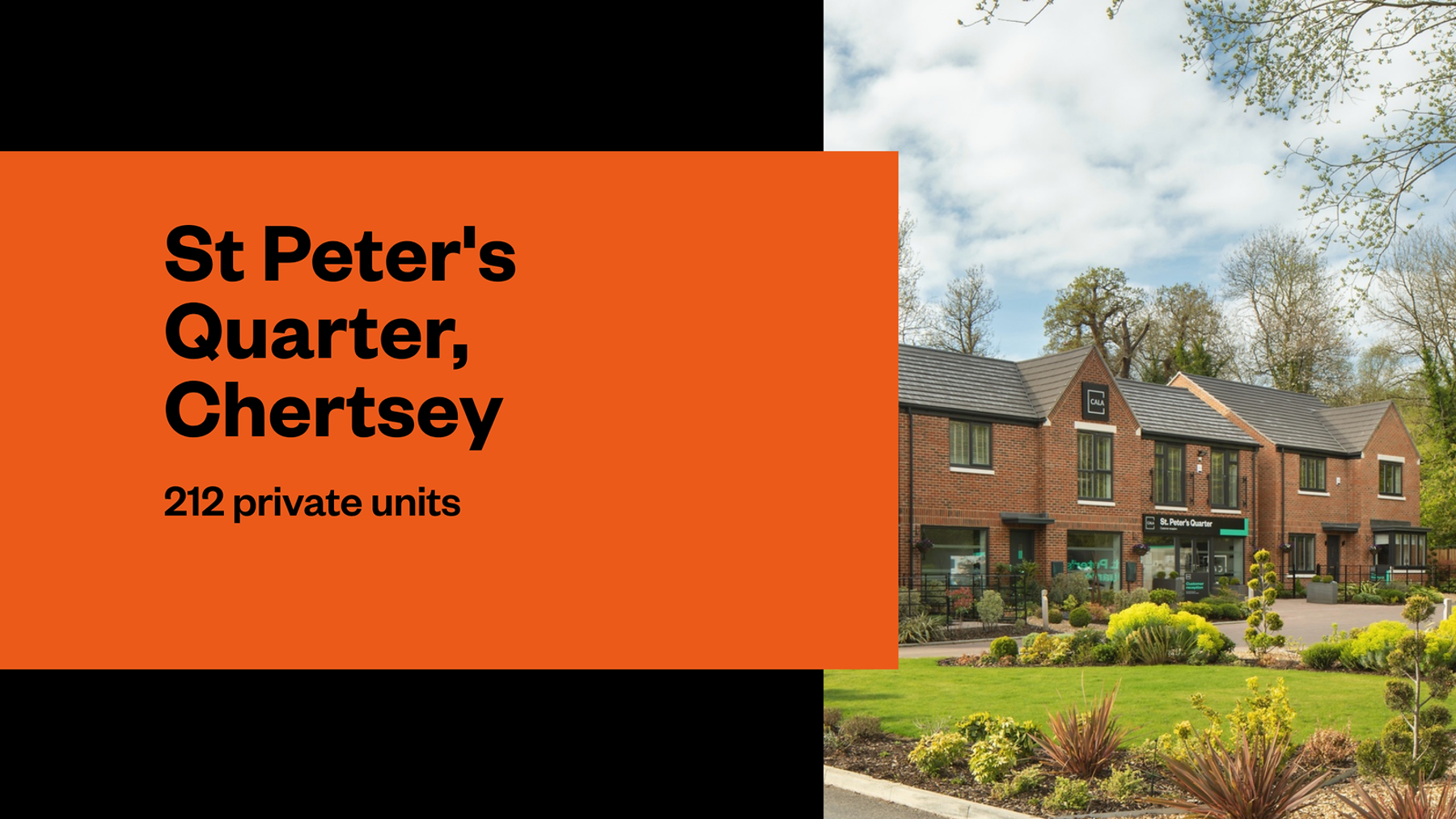 Situated on former NHS land at St Peter’s Hospital in in Chertsey, Surrey, St Peter’s Quarter comprises 212 homes alongside public open space, children’s play areas and a new 116-bedroom retirement home. The sale of the land to Cala has facilitated major upgrade works and extensions to the adjacent hospital.
